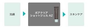 洗顔 ➡ 毛穴クエスト ポアクリアショットジェル AZ ➡ 毛穴クエスト セバムバスタートナー AZ➡ スキンケアの順にご使用ください。
