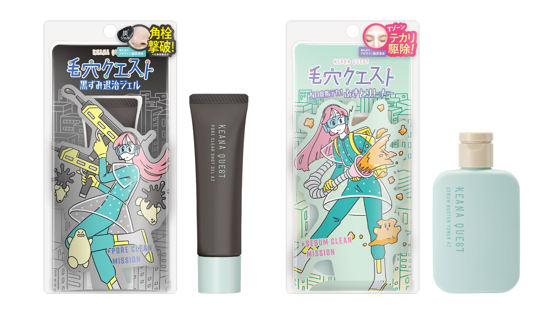 黒ずみ退治ジェル「毛穴クエスト ポアクリアショットジェル AZ」、Tゾーン用ふきとりトナー「毛穴クエスト セバムバスタートナー AZ」2品を新発売いたします。