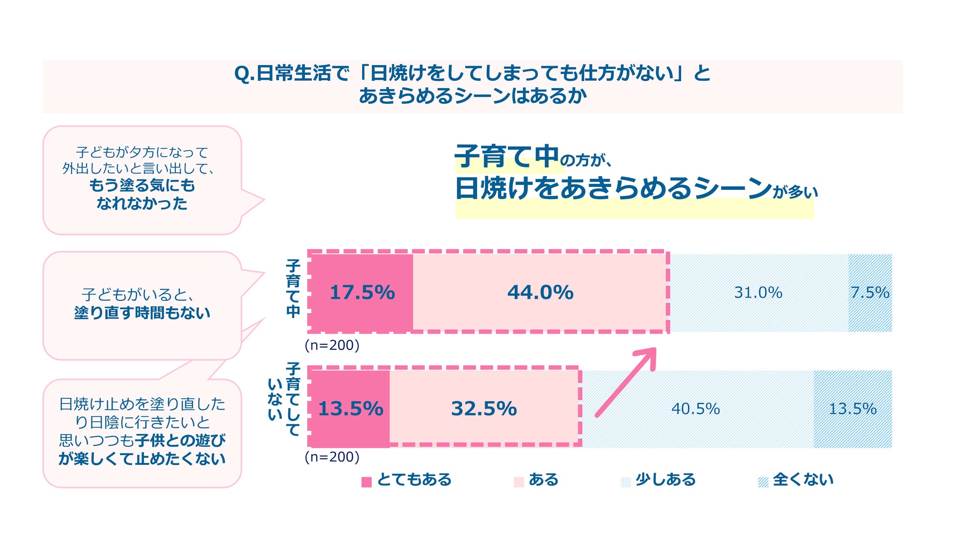 子育て中の方が、日焼けをあきらめるシーンが多い傾向に!