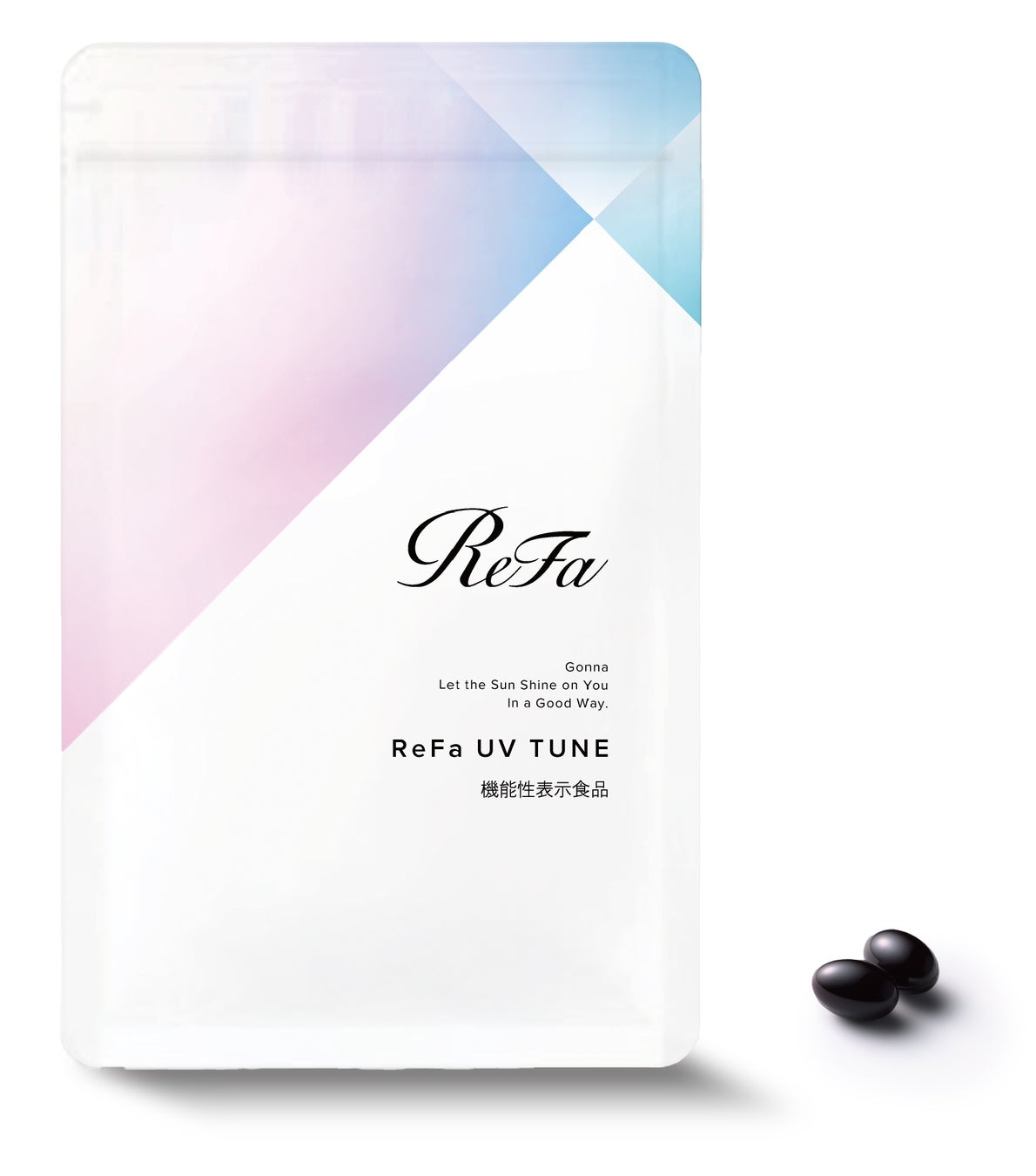 紫外線ケアの落とし穴“UVリーク”に着目して作られた「ReFa UV TUNE」は、「紫外線・乾燥・弾力」の3つのケアを1つで実現し、全身の肌を内側から守る、機能性表示食品です。