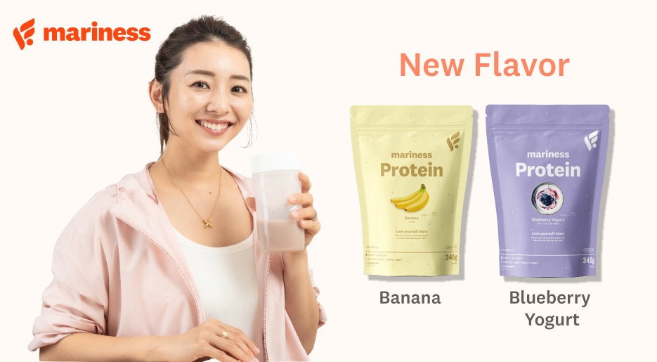 ▼新プロテイン「バナナ」「ブルーベリーヨーグルト」、「プロテインシェイカー」