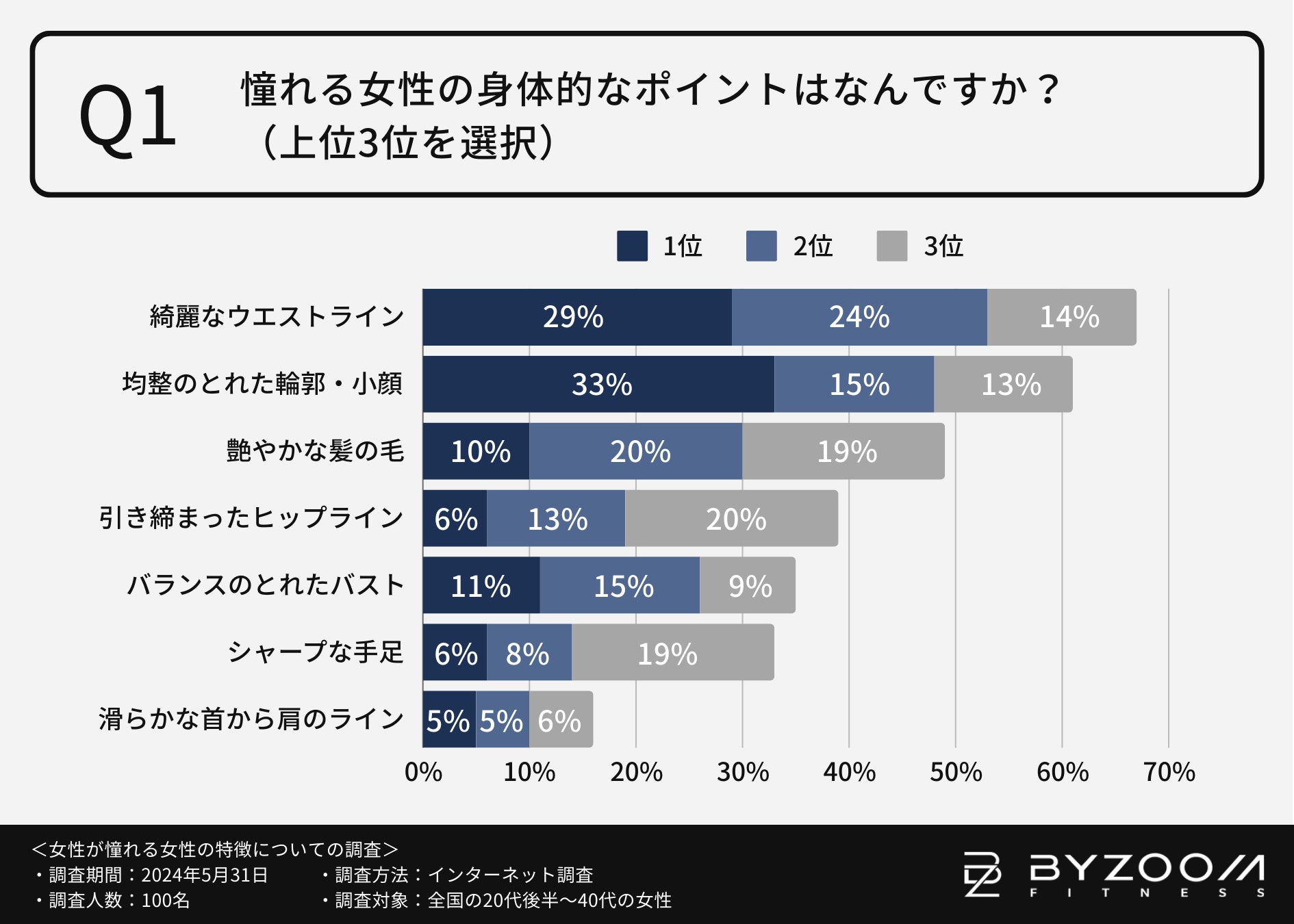 また、3位までの総合では「綺麗なウエストライン(29.0%)」という回答が最も多い結果となりました。