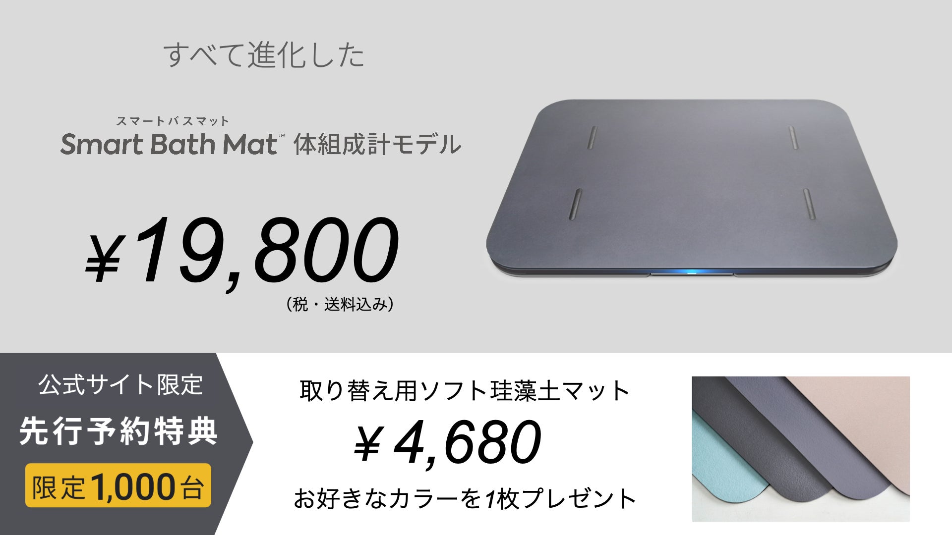 「スマートバスマット」は、2022年4月に応援購入サービス「Makuake」で発表し、先行予約販売台数が3,000台を突破、定期的な機能の更新やアップデートされていく点が特徴で、現在のユーザー数は42,000人を超えています。この度、ユーザーからの要望や意見を受け、さらに進化した新モデルが登場しました。