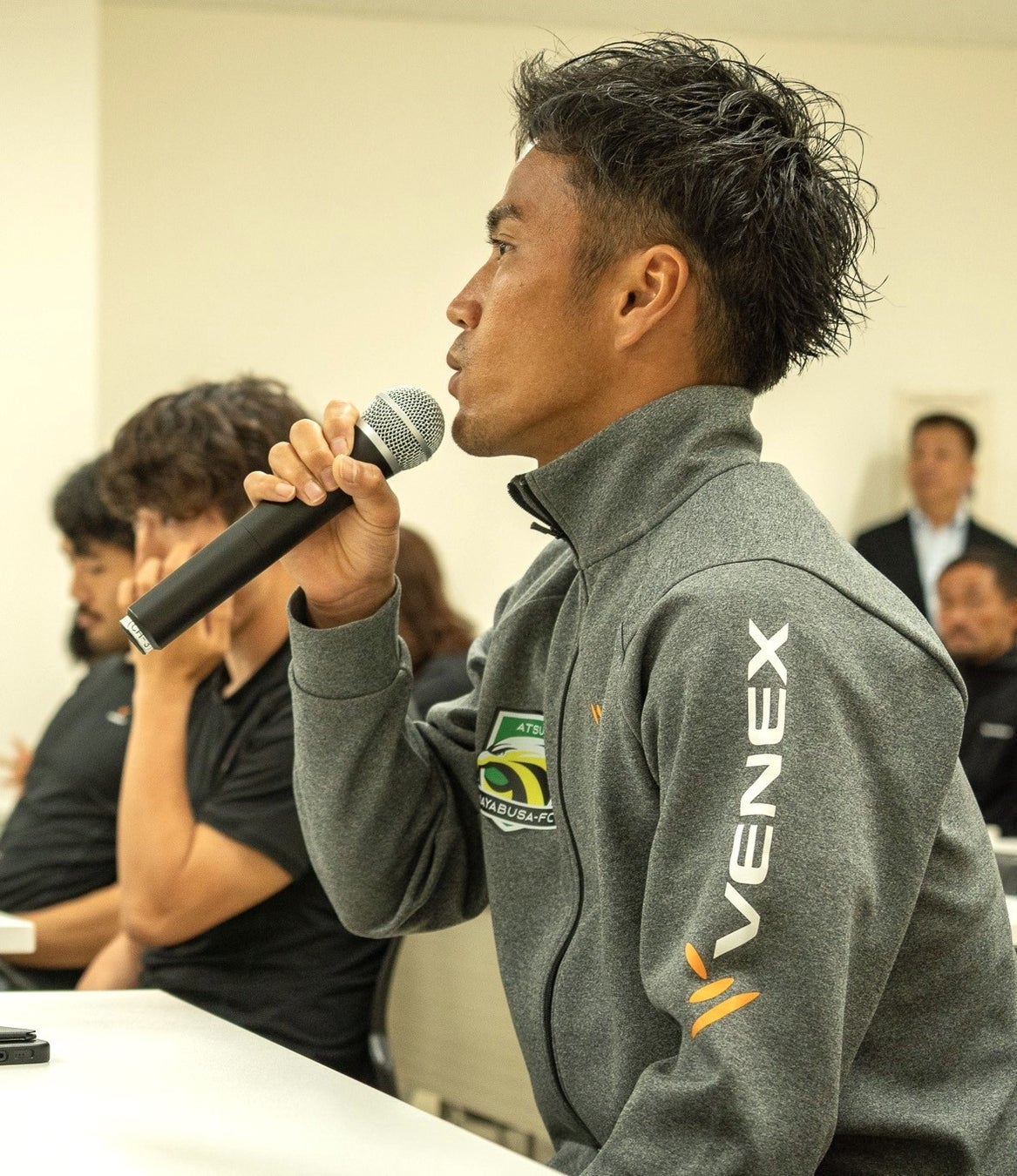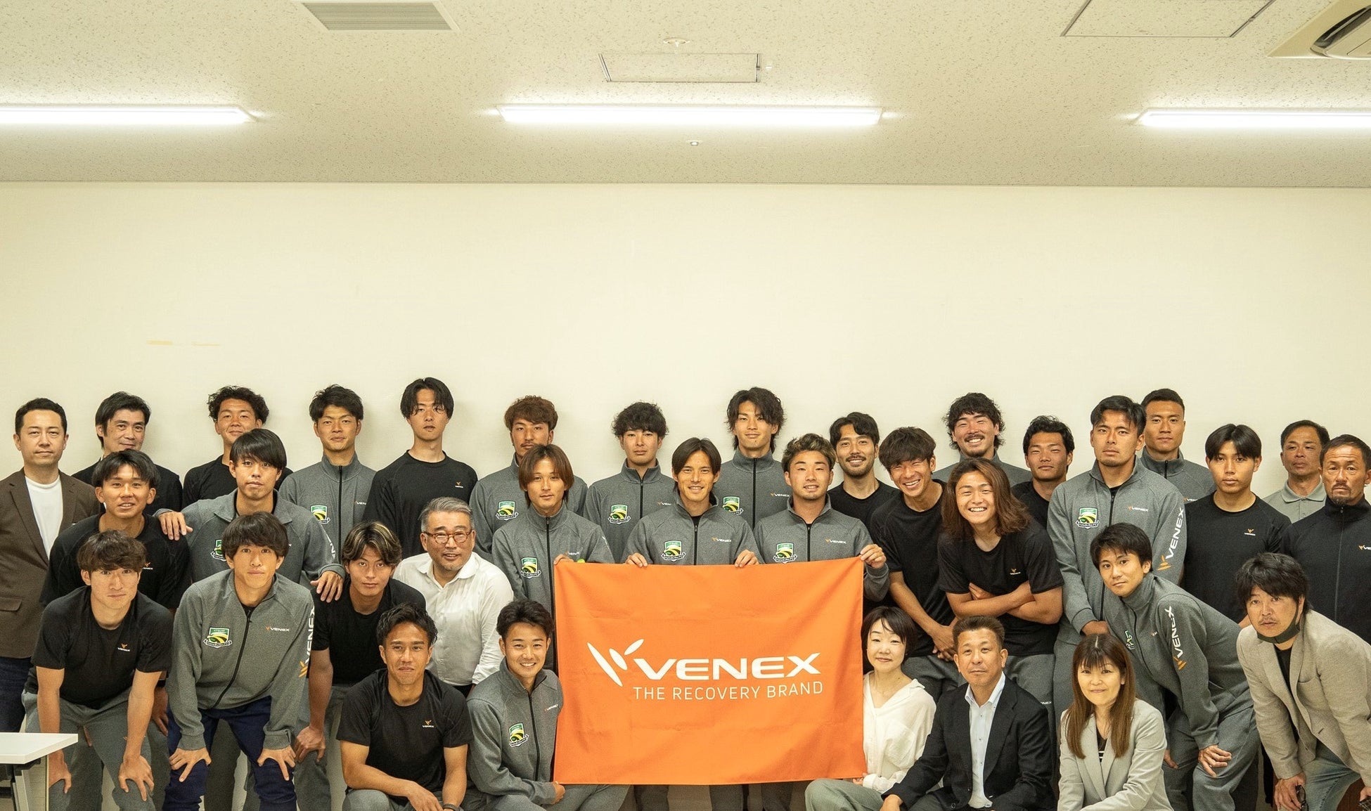 「厚木はやぶさFC」は、当社本社が所在する厚木市をホームタウンとしたサッカークラブで、「厚木市からJリーグへ」をチームスローガンにこれまで社会人リーグから関東サッカーリーグ2部へと年々ステップアップされています。当社は、2021年よりオフィシャルリカバリーウェアサプライヤー契約を締結しており、ウェアの提供を通じて、選手の「休養」をサポートしています。