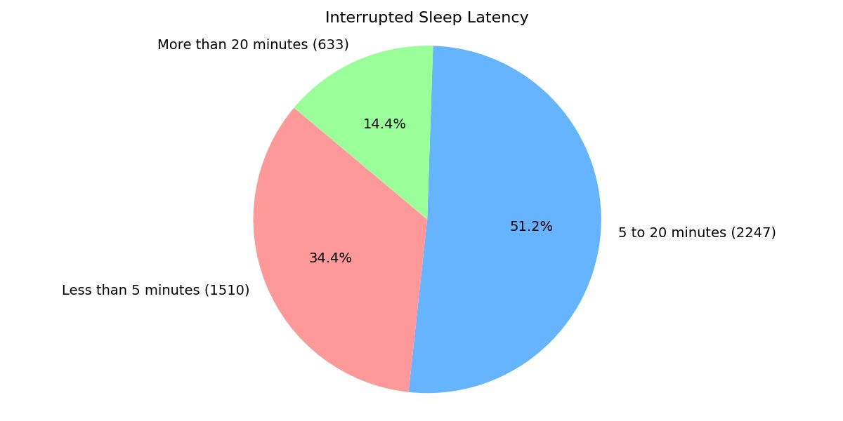 中途覚醒に限定すると、入眠潜時の適正時間の割合は51.2%に減りましたが、より短い「5分未満」で入眠する割合が全体の34.4%まで高まりました。
