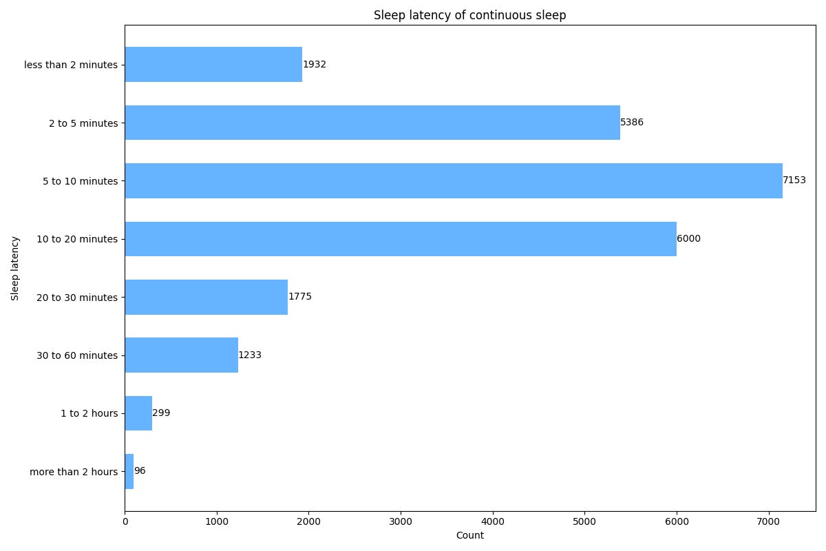 さらに詳細を見ると、連続睡眠では「2分以上5分未満」の方が「10分以上20分未満」より少なくなっています。