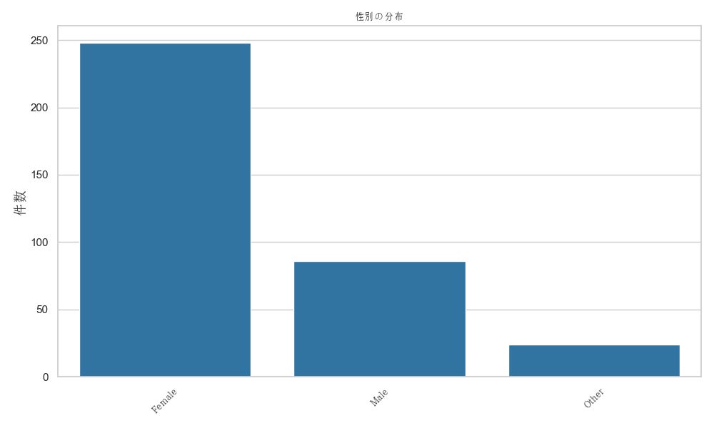 性別の分布:女性比率は男性の3倍。不眠は女性に多い。