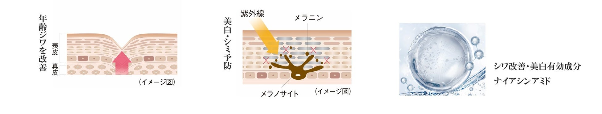 「年齢ジワ」を改善し、「シミ※5」も予防。乾燥小ジワも目立たせない※6。