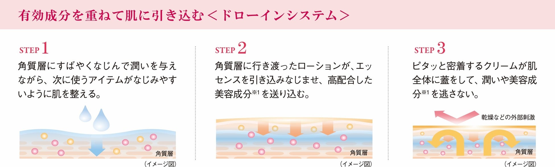 ◆3ステップでより多くの有効成分を肌に届ける「ドローインシステム」
