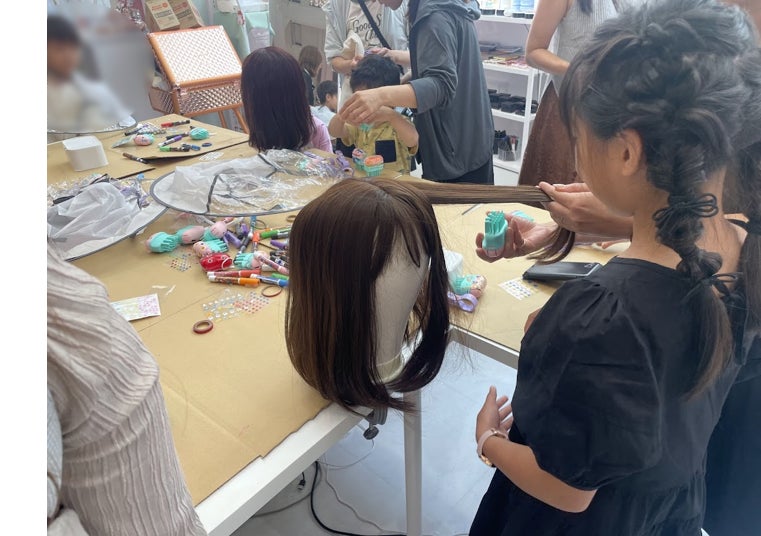 親子2組に1台ウィッグを用意しヘアカットモンスターを使ったヘアカットを体験していただきました。実際にその場でお子様のヘアカットをされる方もいらっしゃいました。お子様がデコレーションしたヘアカットモンスターを利用いただき、お子様にも楽しくヘアカットを体験していただくことができました。