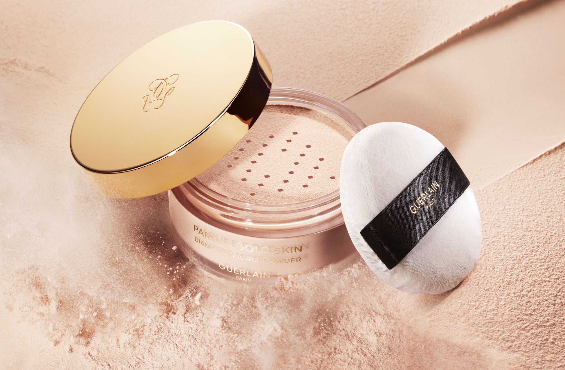 新たなビューティ リチュアルの締めくくりとして、このたびゲランは〈パリュール ゴールド スキン D-マイクロパウダー〉を開発しました。