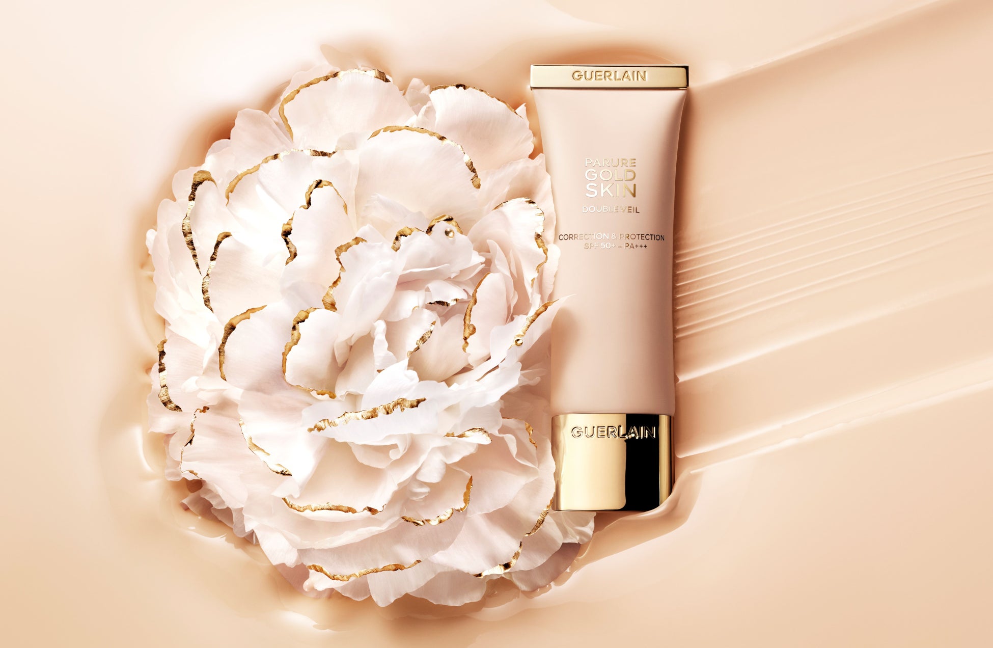このプライマーは、ファンデーションのつきやのりを高めながら、仕上がりを長時間持続するメイクアップベースとしての効果に優れているだけでなく、つけるごとに肌を美しくするスキンケア効果も備えます。〈パリュール ゴールド スキン ダブル ヴェール プライマー〉は、スキンケアとメイクアップの、ダブルのパワーで肌にアプローチします。