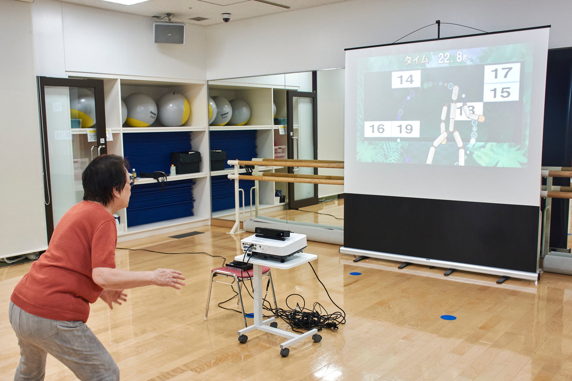 脳活性化プログラム「iトレ」は、3分間画⾯を⾒るだけで認知機能を評価できるアイトラッキング式認知機能評価と、モーションセンサーによる全⾝を使ったゲーミフィケーションプログラムといった最先端技術に、同時に2つの動作を⾏うデュアルタスクトレーニングを組み合わせたフィットネス業界初のオリジナルプログラムです。