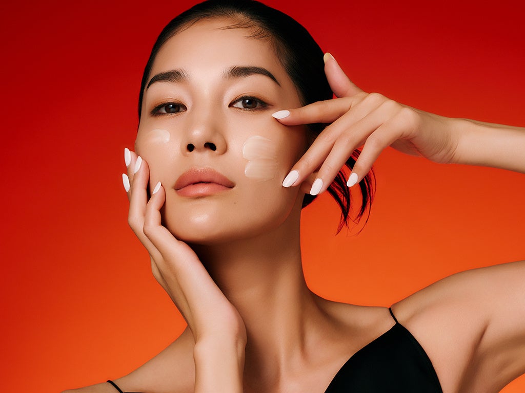 化粧水や美容液で肌を整えた後、直径2cm程度の量を顔全体になじませます。内から外、下から上にくるくるとマッサージした後、こぶしの第2関節でプッシュし、滞りを流して。仕上げに手のひらで顔を包み込み、潤いを閉じ込めます。 |