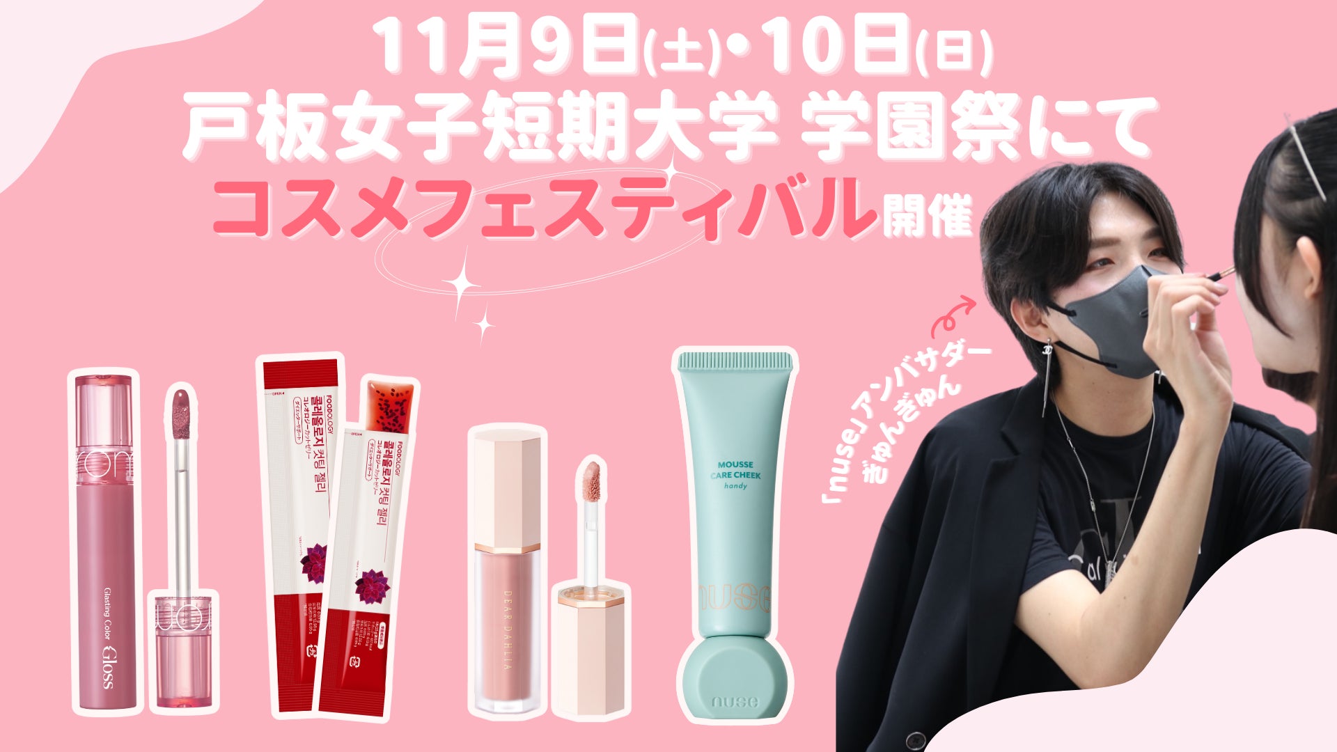 2024年11月9日(土)・10日(日)に開催される戸板女子短期大学 学園祭「TOITAFes」にて 「nuse(ヌーズ)」のアンバサダーを務める“ぎゅんぎゅん”が 大人気コスメ13ブランドを集め「コスメフェスタ」を開催します。
