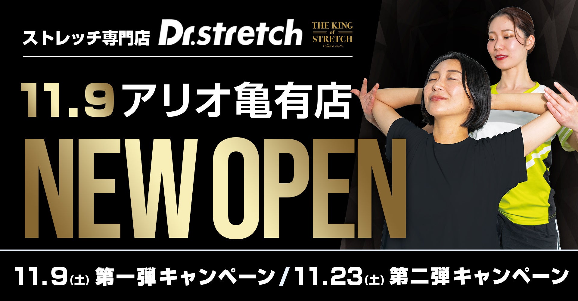 世界250店舗以上で独自技術「コアバランスストレッチ」を提供するストレッチ専門店『Dr.stretch』(株式会社nobitel、本社:東京都新宿区、代表取締役:黒川 将大)は、11月にアリオ亀有店をオープンいたします。