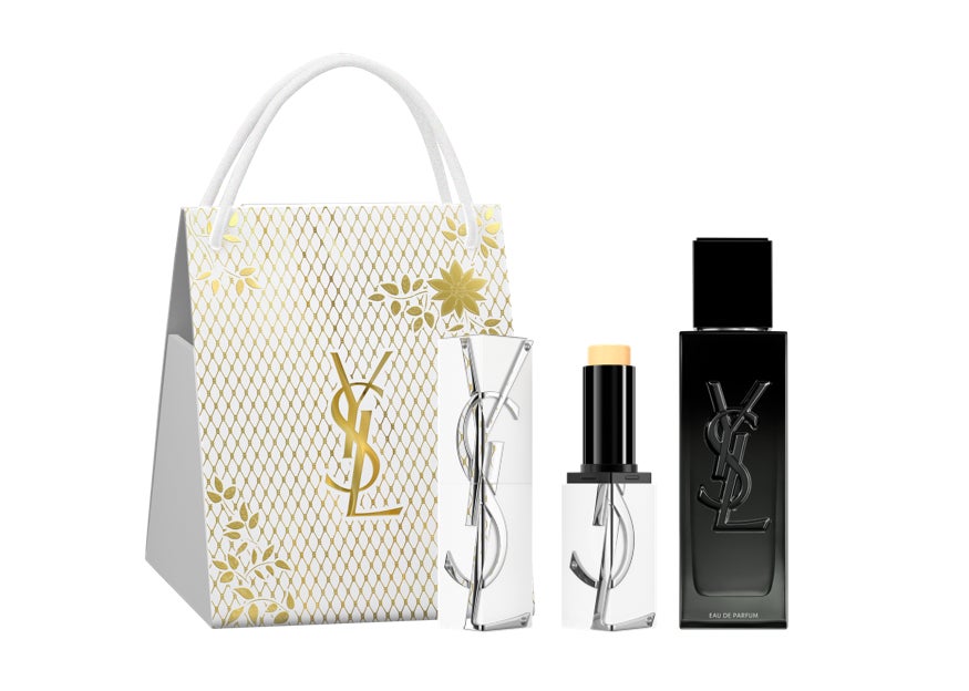 YSLのアイコン マスキュリンフレグランス 「MYSLF オーデパルファム」と、「ピュアショット セラムインスティック」のセット。男性へのプレゼントにも。