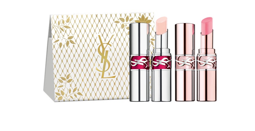 「YSL ラブシャイン キャンディ グロウバーム」をセット。日常使いやすいシェードでどなたにでも喜ばれるギフトセット。