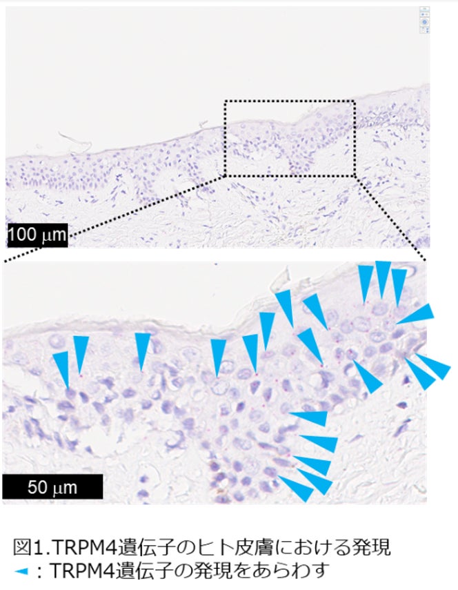 ヒト皮膚や肌の細胞にTRPM4が含まれていることは知られていましたが、実際のヒト皮膚のどの部位にTRPM4が存在しているのか、空間的な分布は明らかではありませんでした。
