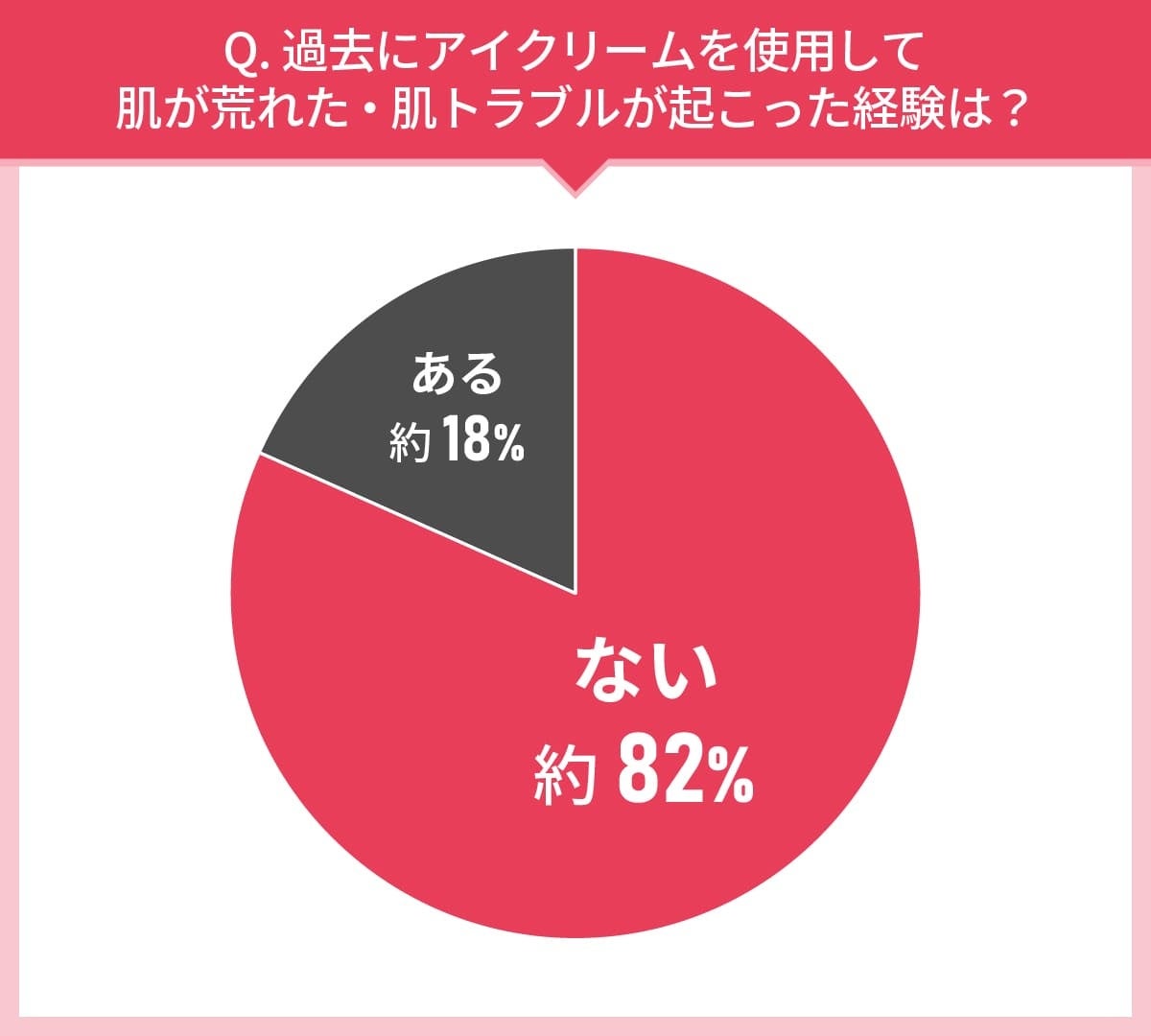 約82%の人が肌トラブルの経験はないと回答している一方で、約18%の人があると回答しました。割合としては少ないものの、合わないアイクリームを使うと肌トラブルが起こる場合があるということですね。