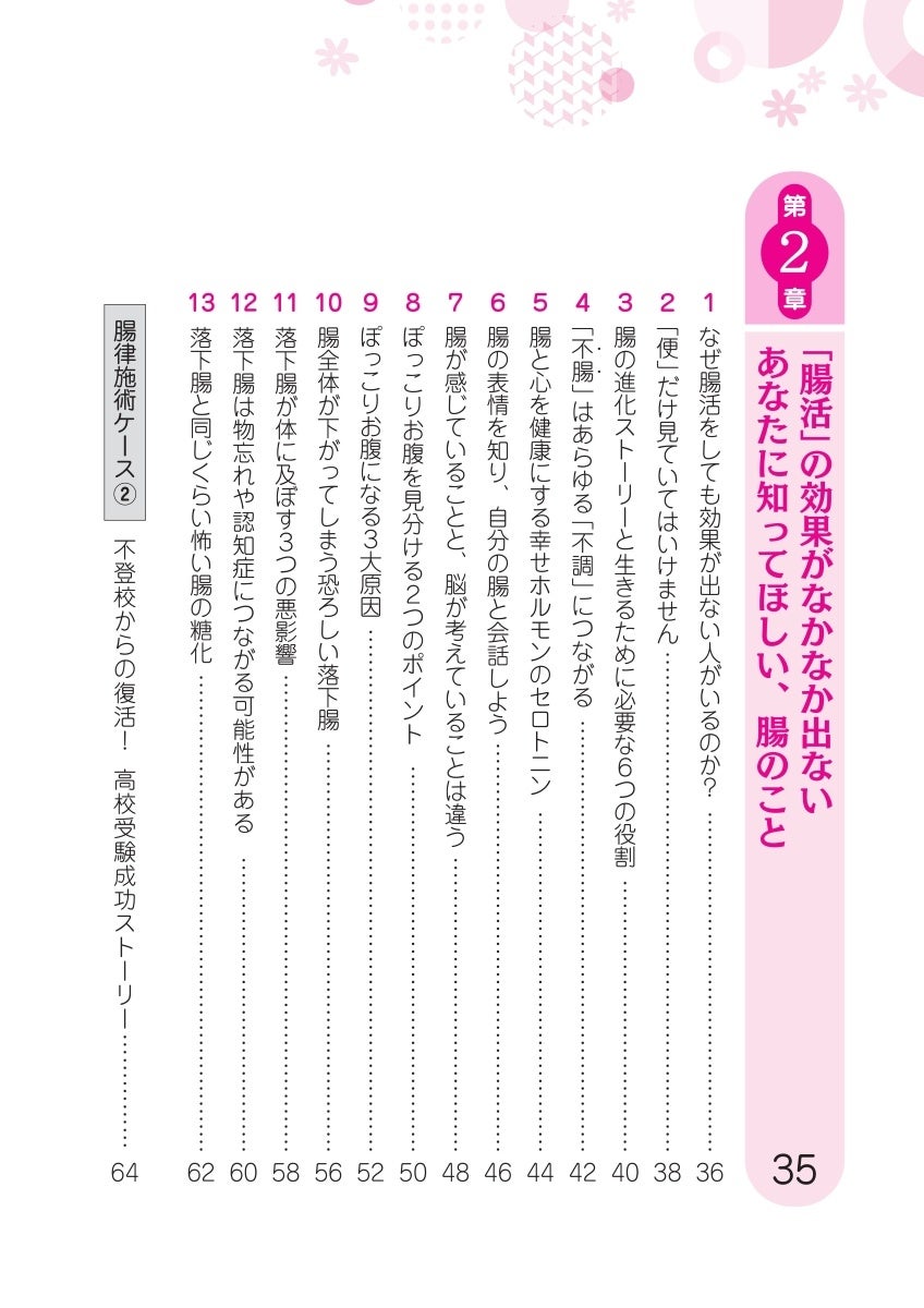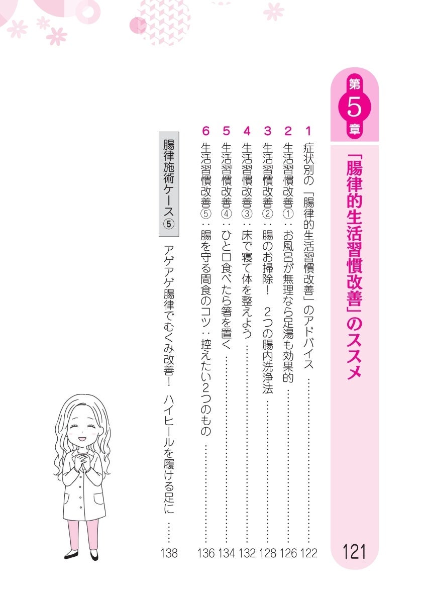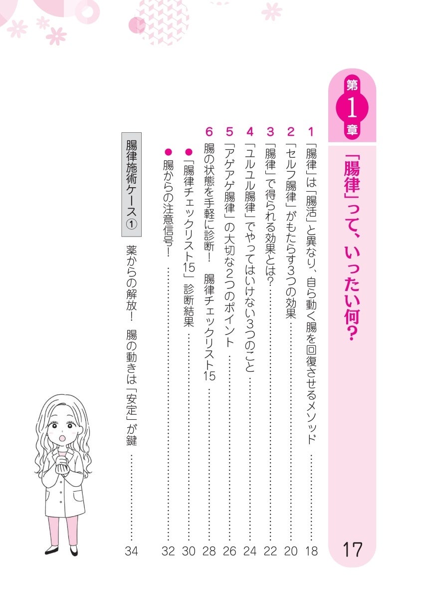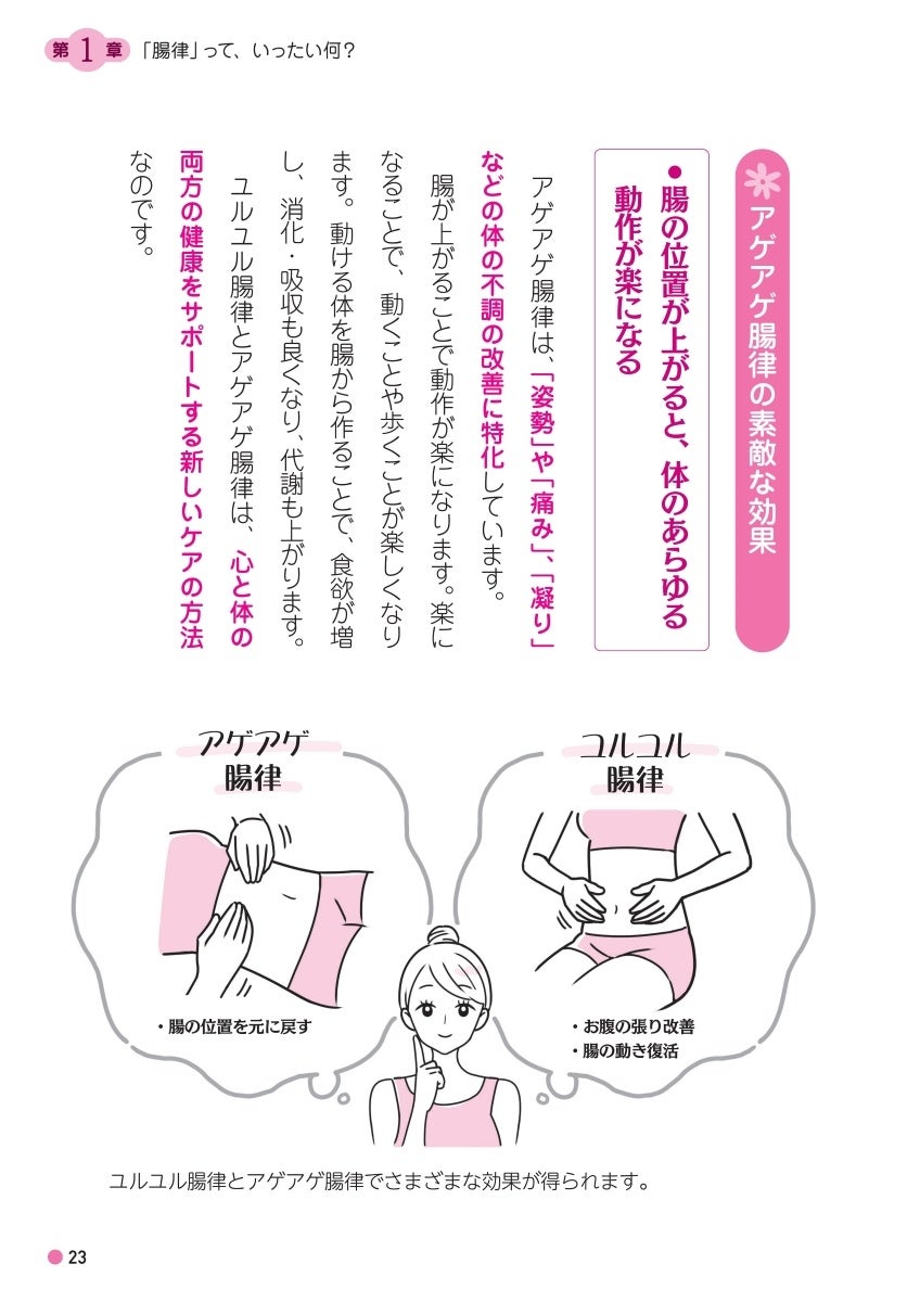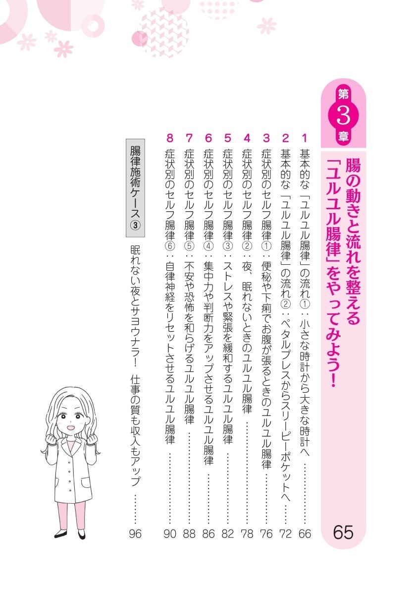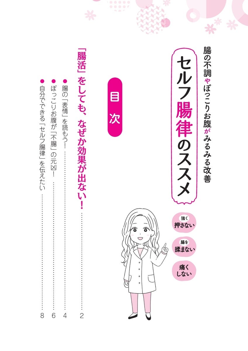 本書では「腸活」がうまくいかない原因である「腸の動きの悪さ」と「ぽっこりお腹」を【腸律】で改善し、誰でも、簡単に、自分で腸からの健康管理ができることを目指します。「腸律」とは腸の質や位置に注目して、「自ら動く腸」に導くこと。心身の不調は「腸」とつながっています。本書では、さまざまな心身の悩みに効果がある「腸律」を紹介します。