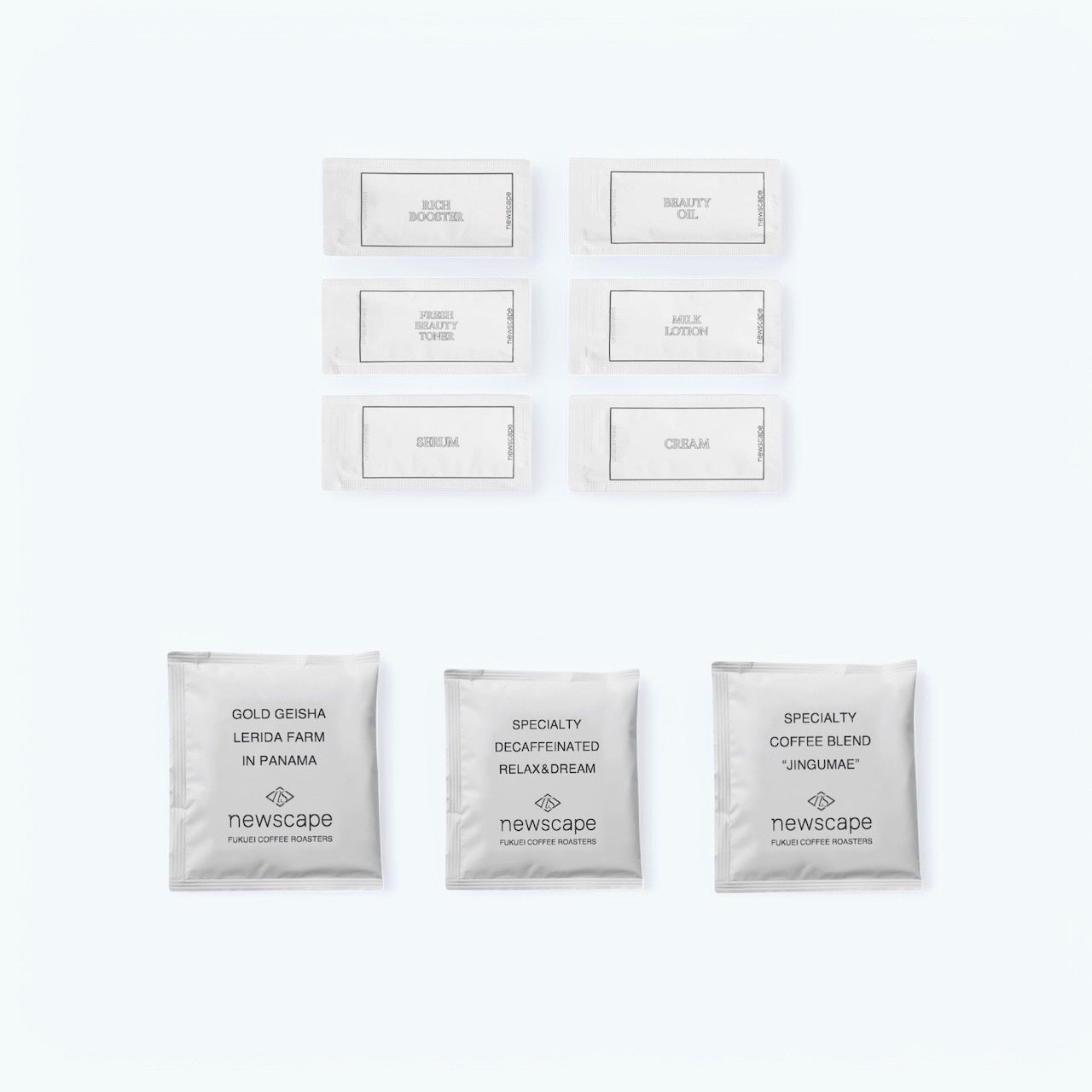 newscapeのスキンケア6点のトライアルサシェと「newscape FUKUEI COFFEE ROASTERS」ドリップコーヒー3種のセットを公式オンラインストアにて2025年2月13日(木)より限定発売いたします。
