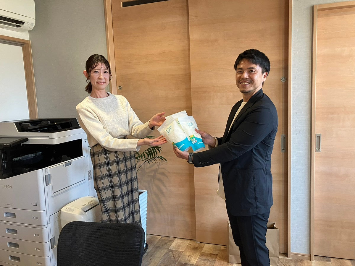 AQUAGIFT(アクアギフト)は、娘の敏感肌を薬に頼らず守りたいという想いのもと誕生した敏感肌用バスソルトです。自分のことはもちろん、家族のことを想い頑張っているママ・ご家族様に貢献できる方法を模索してきました。当商品に多いお客様層と児童発達支援センターGIFTさんのお客様層や価値観が一致していることから寄付をする運びとなりました。