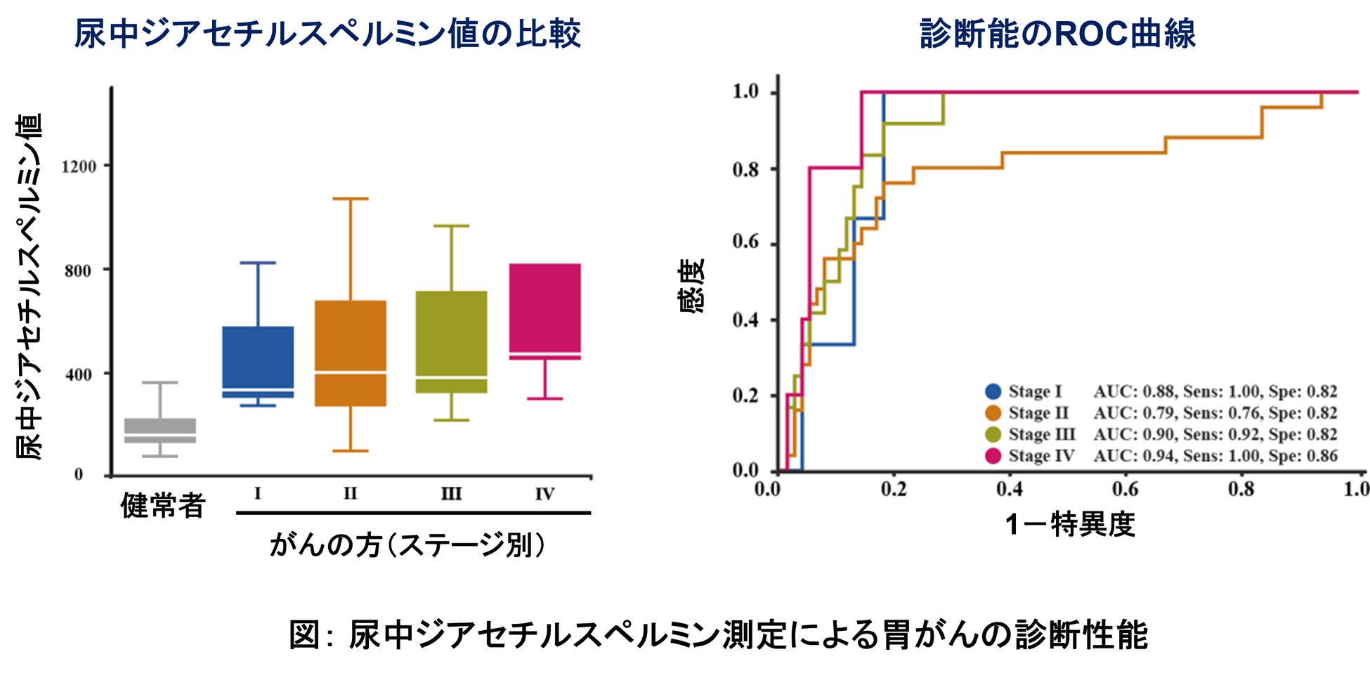 • 尿中のDiAcSpm値を測定することで、ステージ1の消化器がんの早期発見が可能であることを示した。