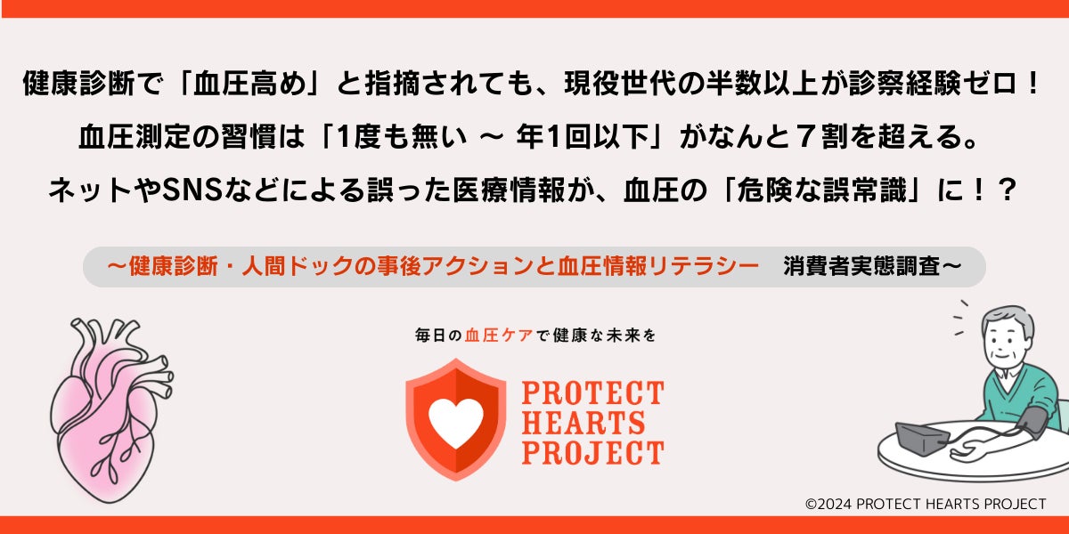 健康診断で「血圧高め」と指摘されても、現役世代の半数以上は診察経験がないことや、血圧測定習慣の浸透ができていないこと。血圧に関する誤情報が、ネットやSNSなどで多くの消費者に届いてしまっている実情などが明らかになりました。(https://prtimes.jp/main/html/rd/p/000000012.000119181.html)