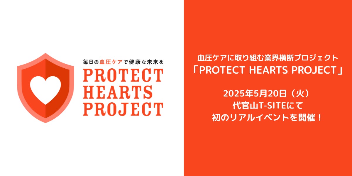「血圧ケア」の大切さや日々取り組める身近なアクションの啓発に向けて、食品・医療・流通・運動など複数業種の企業が連携する「PROTECT HEARTS PROJECT(読み:プロテクト ハーツ プロジェクト)」は、5月17日の「世界高血圧デー」に際し、2025年5月20日(火)に代官山T-SITEにて、初のリアルイベントを開催します。