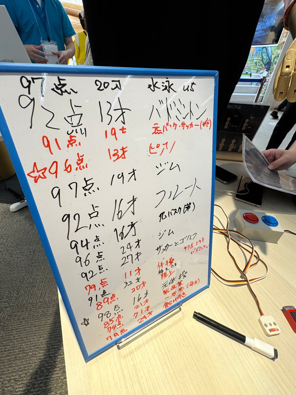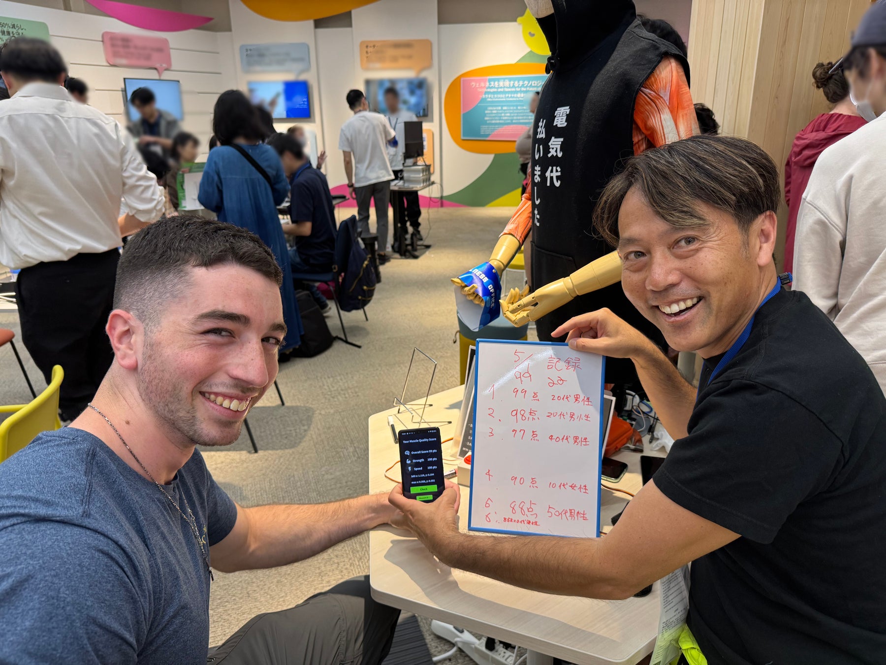 細身の中学生が99点、77歳男性が96点と、年齢や体型に関係なく高得点が出ることに、多くの来場者が新たな気づきを得ました。