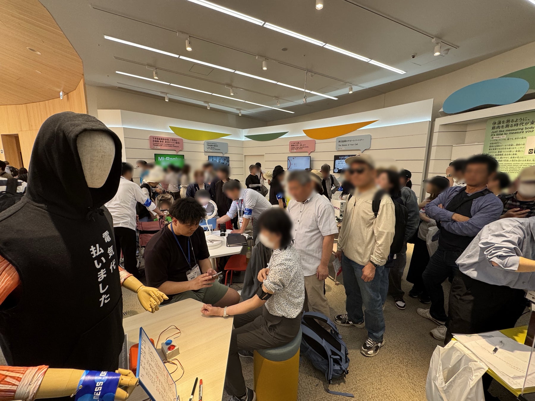 展示期間中、1日平均240名以上が体験。最大待ち時間は40分に及び、会場内でも屈指の人気展示となりました。展示ブースでは、LEDで筋肉の状態が“見える”マネキン展示や、年齢・性別を問わず楽しめる設計が好評を博しました。