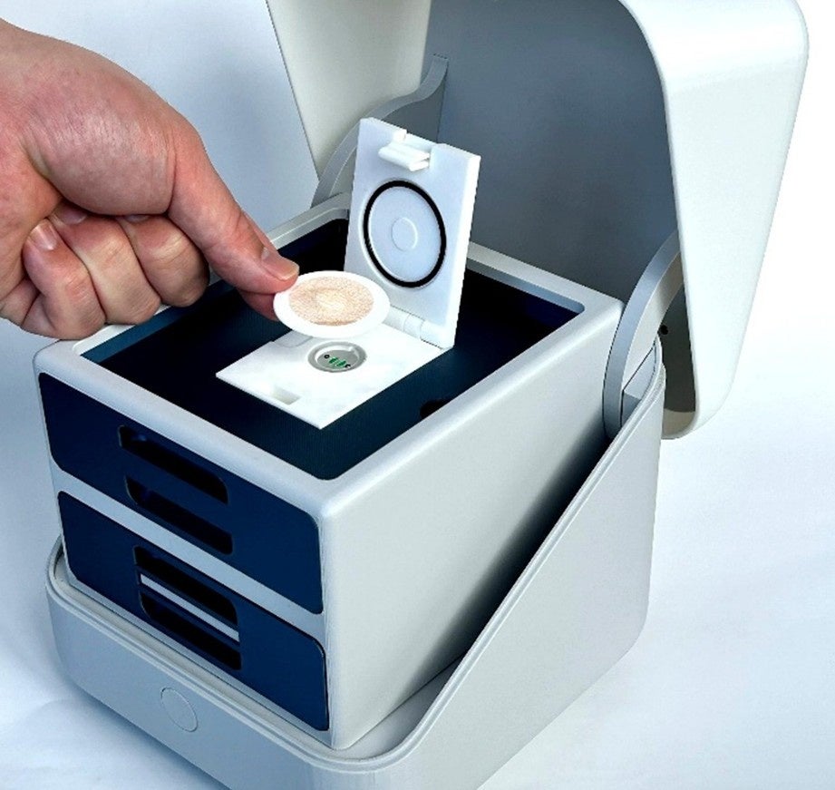 肌から採取した”ごく微量の汗”を用いた分析により、従来の検査方法では難しかった身体内部の状態を非侵襲かつ簡便に可視化します。サンプル採取は、非侵襲的な汗パッチでわずか3分、その後採取したパッチをマシンにセットし、完全自動化されたマシンにより、専門知識がなくても誰でも簡単に使用できます。