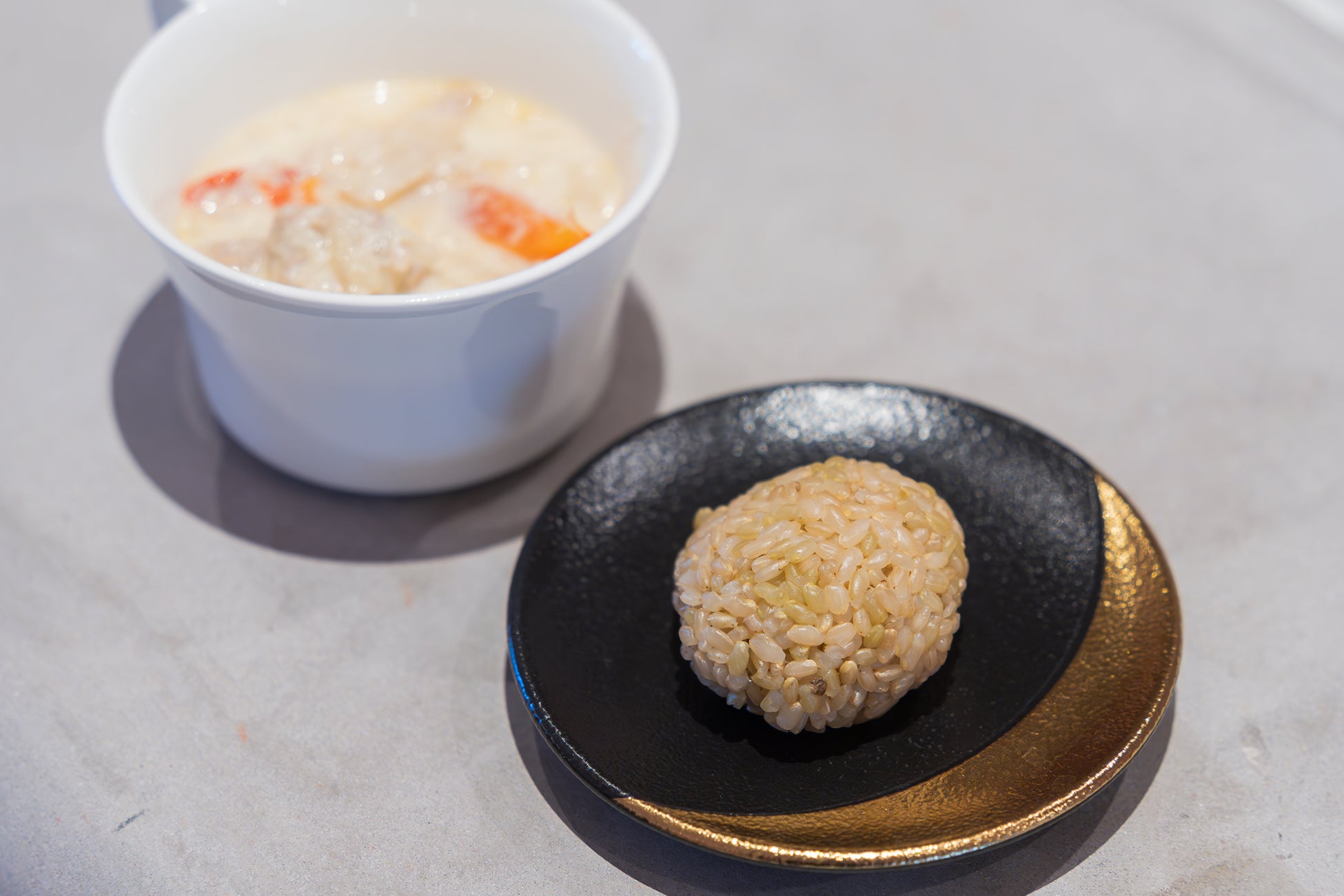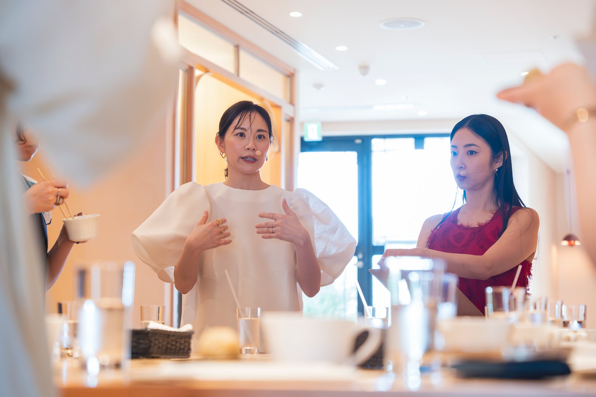 野菜の料理家として活躍する西岡麻央氏。この日のために鶏肉とパプリカのタイ風カレースープを考案し、MEGUMIも定期的に取り入れる「若玄米」のおにぎりと一緒にいただきました。腸を整える要素や、栄養も豊富な2品を通して、食も美肌とつながっていることを皆さんと体感していただきました。