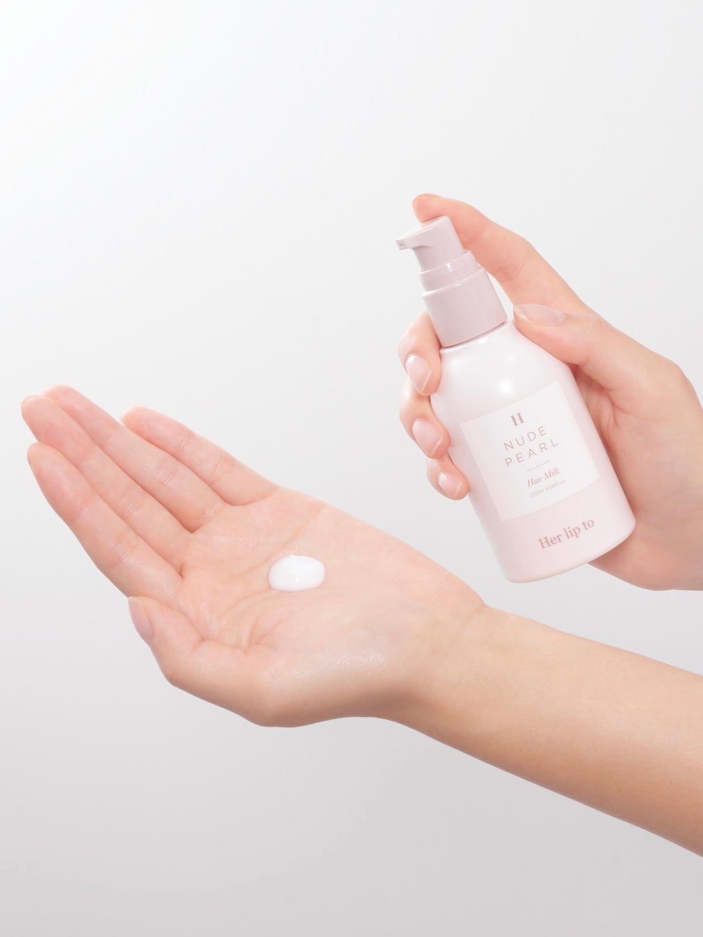 圧倒的な人気を誇るHer lip to BEAUTYのシグニチャーパフューム“NUDE PEARL”の香り。軽くてみずみずしいヘアミルクに、“NUDE PEARL”の複雑な奥行きを持たせ、髪からふわっと広がる香り立ちを楽しめます。夜のセルフケア時間から、眠りにつく時間、そして朝起きたときまで、“NUDE PEARL”の香りで包んでくれます。