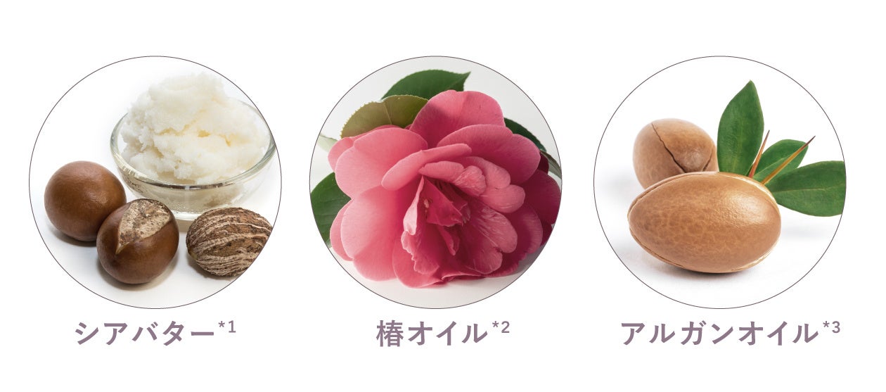 *1 シア脂 *2 ツバキ種子油 *3 アルガニアスピノサ核油
