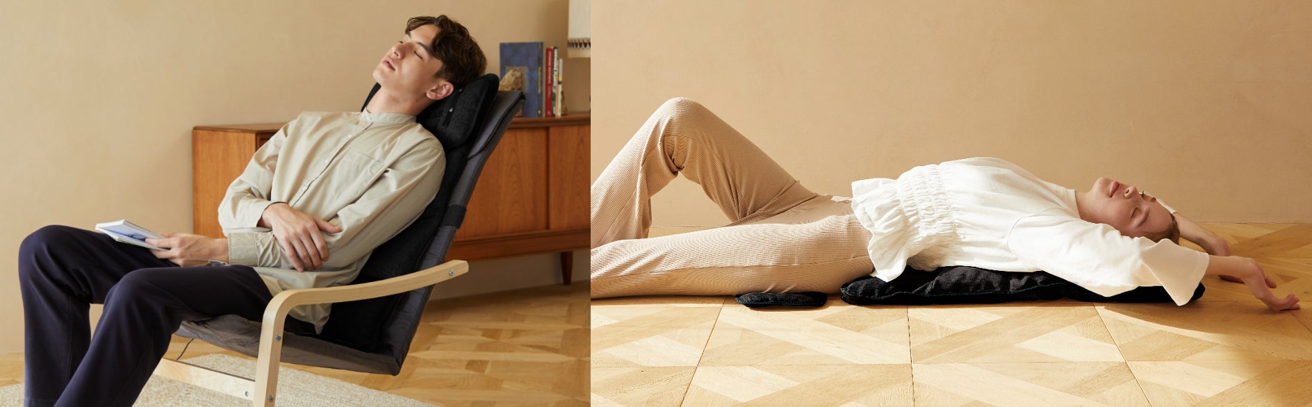 座って、横になって、自由に使える【3Dマッサージシート flatty】新色<ブラック>登場!