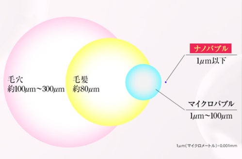 そもそもナノバブルとは1μm以下の泡であり、0.001mmと、毛穴よりもかなり小さいです。
