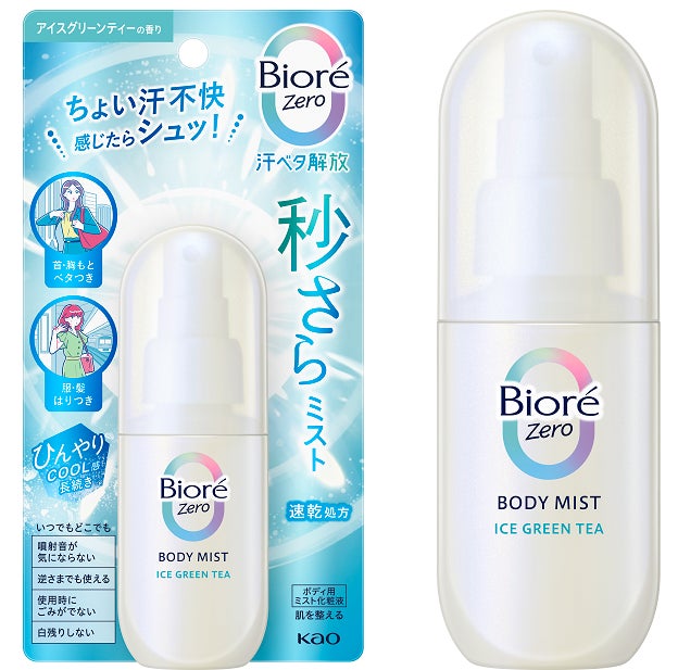 『ビオレZero ミスト』は、駅や街、職場など、いつでもどこでも使いやすいミストタイプで、汗によるベタつきや服のはりつきをすばやく軽減する、新しい*2汗ケアを提案する商品です。花王は本商品を通じて、湿度・温度ストレス*1を軽減し、毎日をより快適に過ごせるよう、サポートしてまいります。