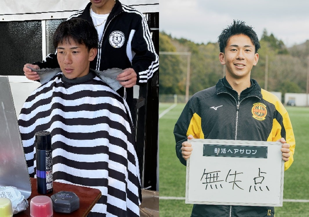 普段は髪を分けるくらいでスタイリング剤はあまり使わないけれど、今日はちゃんとセットしてもらって、視野が広いとプレーもしやすいと思いました。新しいスタイルで新鮮ですし、気持ちも気合も全国に向けて入ったかなと思います。全員でまずはしっかり一勝したいと思います。(キャプテン 今井凛太朗選手)
