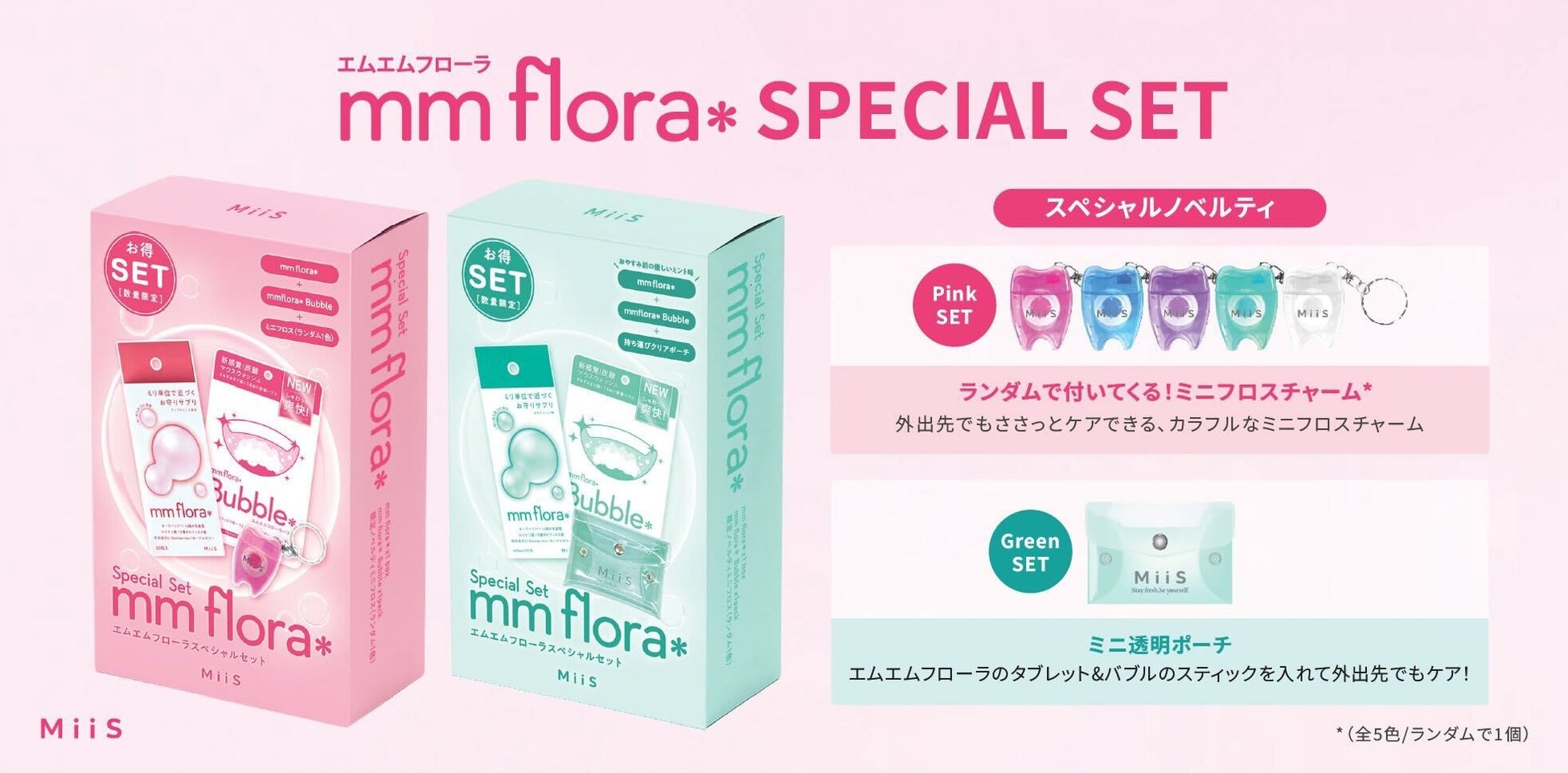 全国のロフトにて販売し、大好評につき増産が決定した、ランダムのミニフロスチャームがノベルティの「エムエムフローラスペシャルセット」。これまでの全国のロフトに加え、今後はQoo10やその他バラエティショップにて展開を拡げて数量限定で発売します。