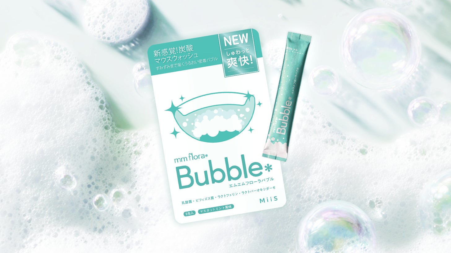 株式会社MUSCAT GROUP(本社:東京都渋谷区、代表取締役:大久保 遼、証券コード:195A)の連結子会社で、「WinK TO COMMUNITY」をミッションに、心躍るプロダクト・サービスを創出する株式会社WinC(本社:東京都渋谷区、代表取締役:荻原 萌々佳 )が展開するオーラル美容ブランド「MiiS(ミーズ)」は、発売から約2か月で累計販売数2万個を突破した、飲み込み型マウスウォッシュ「mm flora*Bubble(エムエムフローラバブル)」の新フレーバー「マスカットミント風味」を2026年2月25日(水)よりMiiS公式サイトおよびECモール(Qoo10・楽天市場・Amazon)にて発売いたします。