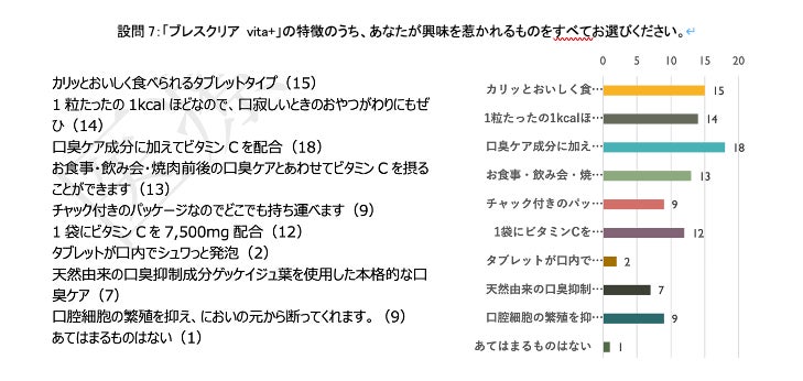 本製品について、医師が特に興味を惹かれた特徴は以下の通りです(設問7:複数回答)。