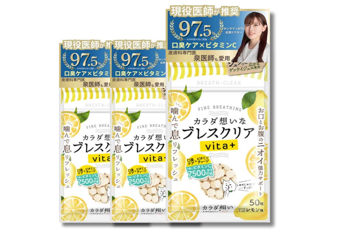 対面機会の増加による口臭の不安と、多忙による美容ケア(ビタミンC補給)の後回し。こうしたお困りごとを解消する手段として注目されているのが「ブレスクリアvita+」です。天然由来の口臭抑制成分ゲッケイジュ葉濃縮エキスを配合した口臭ケア製品で、エチケット意識が高まる現代のニーズを的確に捉えています。