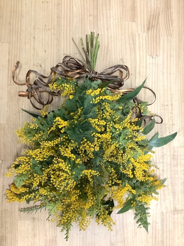 国際女性デーのシンボルフラワーミモザを使用したUBX店舗の装飾
