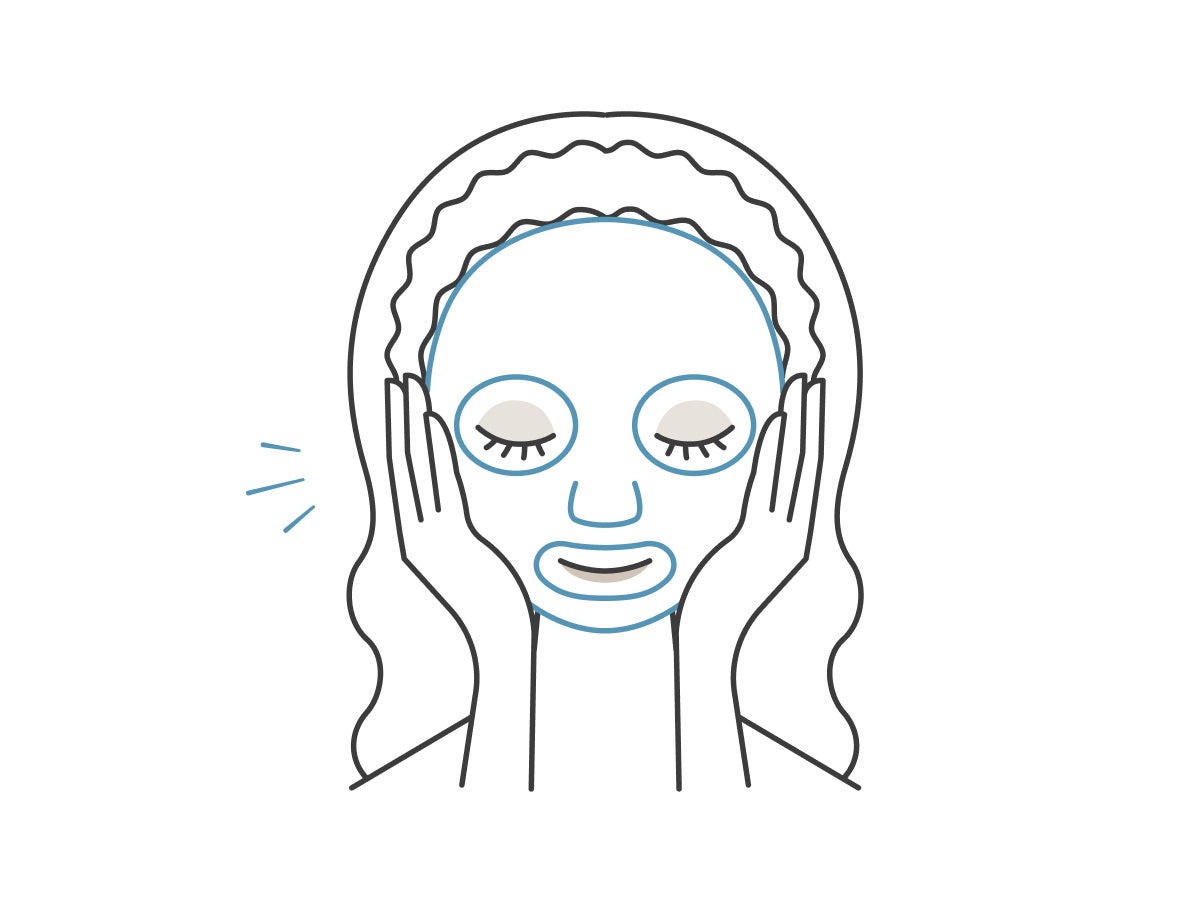 メイクの上からフェイスマスクを装着し、1~5分程度、メイクに美容液を馴染ませます。